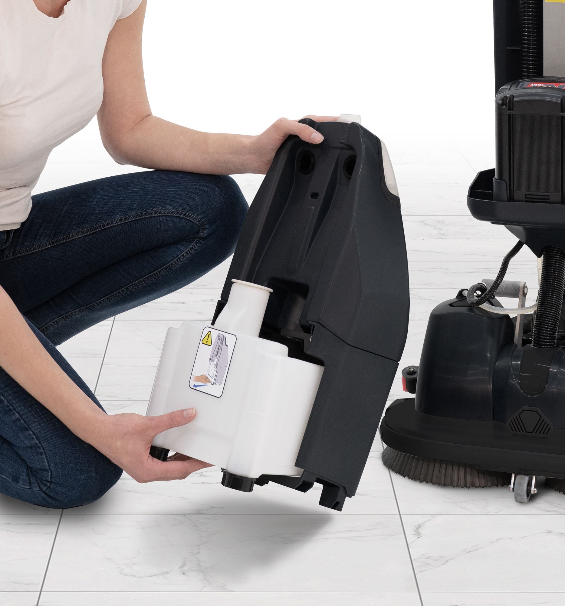 It can easily operate even in cluttered areas for professional floor cleaning and, above all, with enhanced ergonomics.