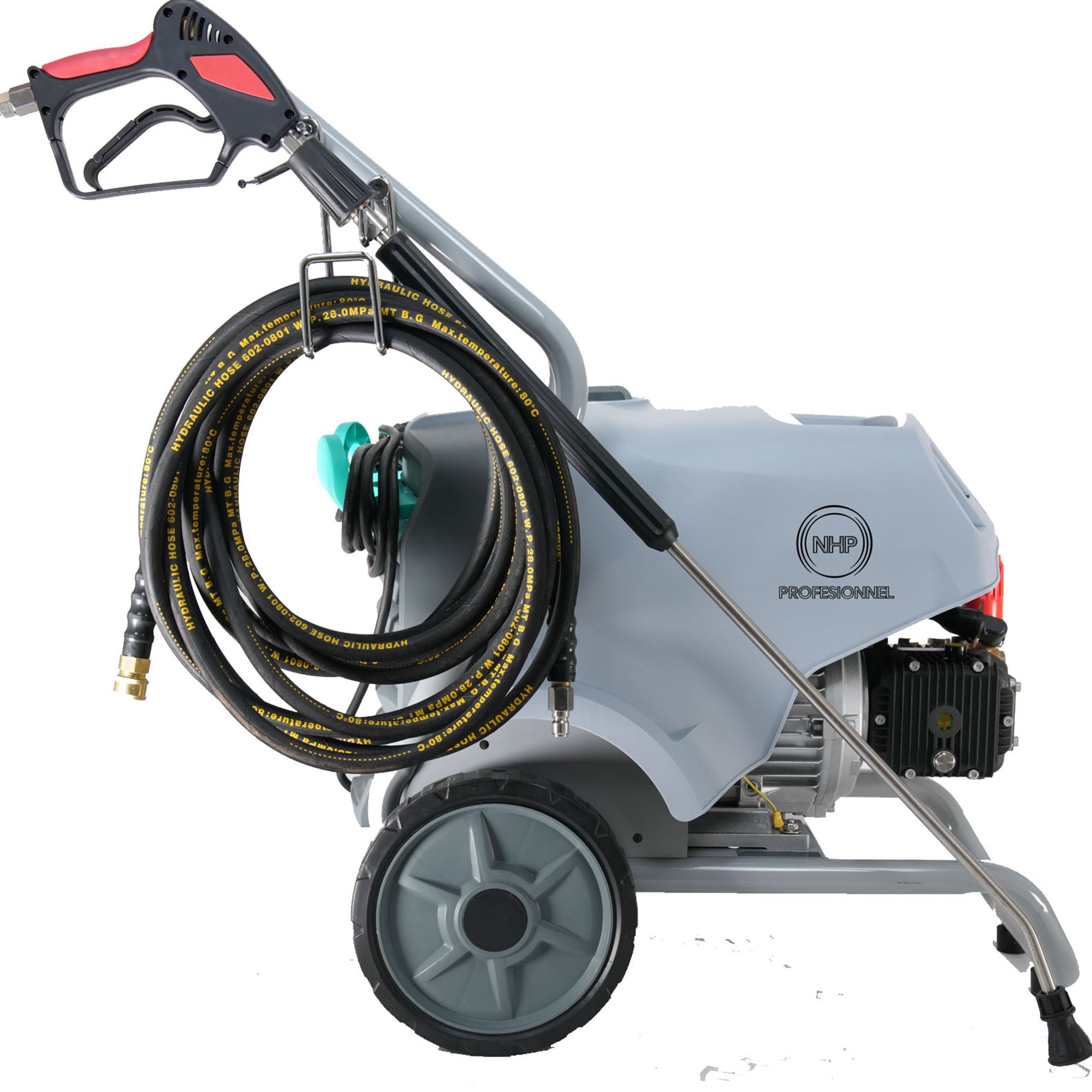 The Numatic NHP Intensive high-pressure cleaner is designed for professional use. Its 140 bar pressure, high flow rate, and comprehensive equipment allow for effective cleaning of heavily soiled surfaces, even during extended use.