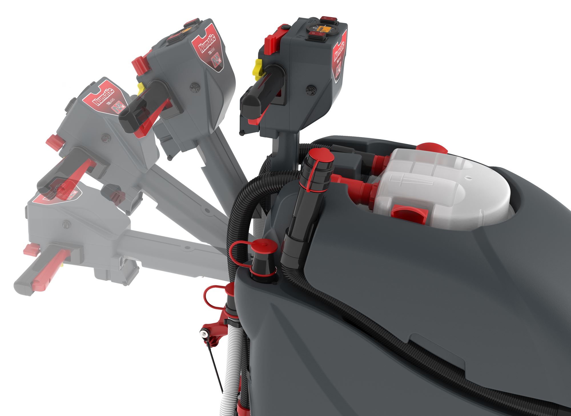 Small footprint but big productivity! With its two NX1K 50Ah batteries producing 100 Ah, it offers a runtime of over 3 hours. The most versatile machine in the NX1K range, capable of washing over 1200 m2 per hour while maintaining unparalleled maneuverability.