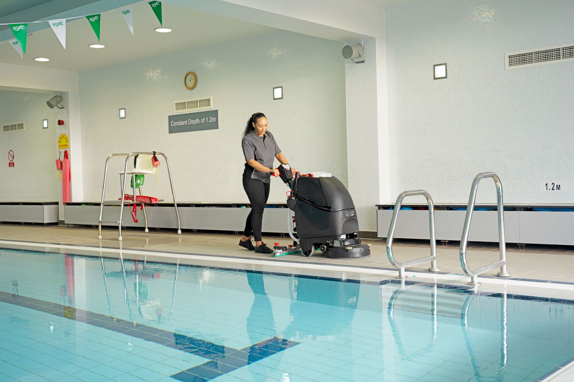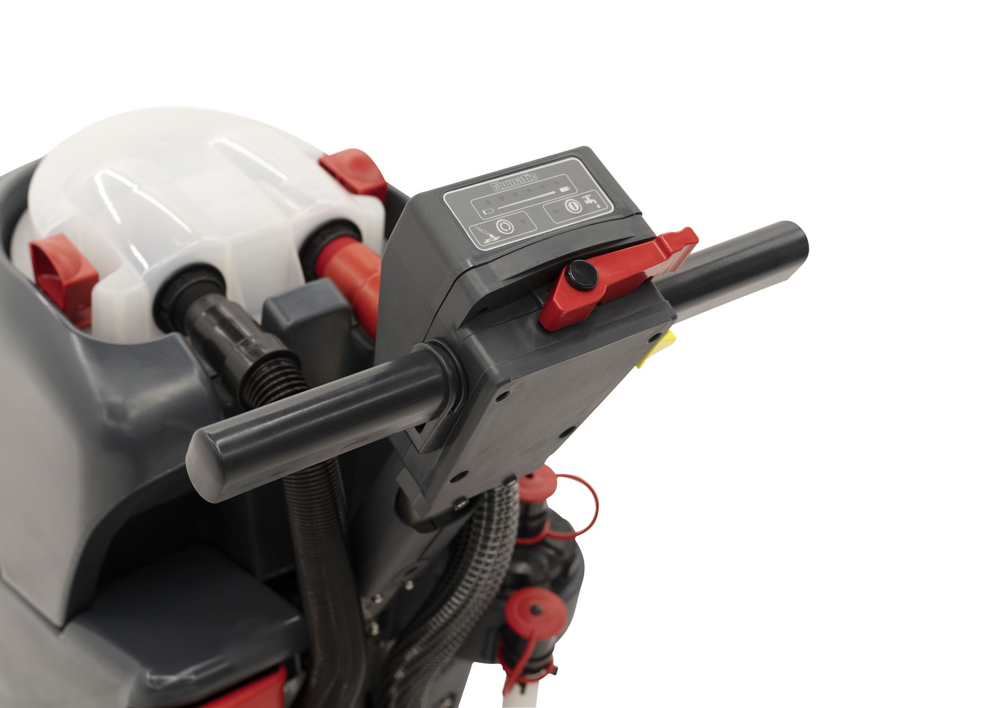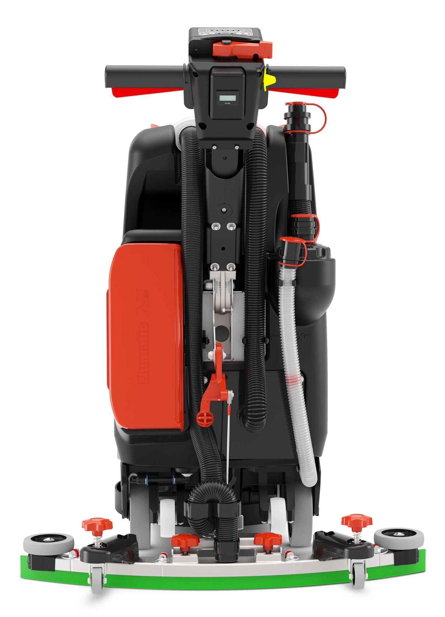 The Numatic battery-powered scrubber has great power. The batteries are long-lasting and recharge quickly. The Numatic scrubber will be water efficient thanks to the centrifugal water system that ensures precise water distribution.