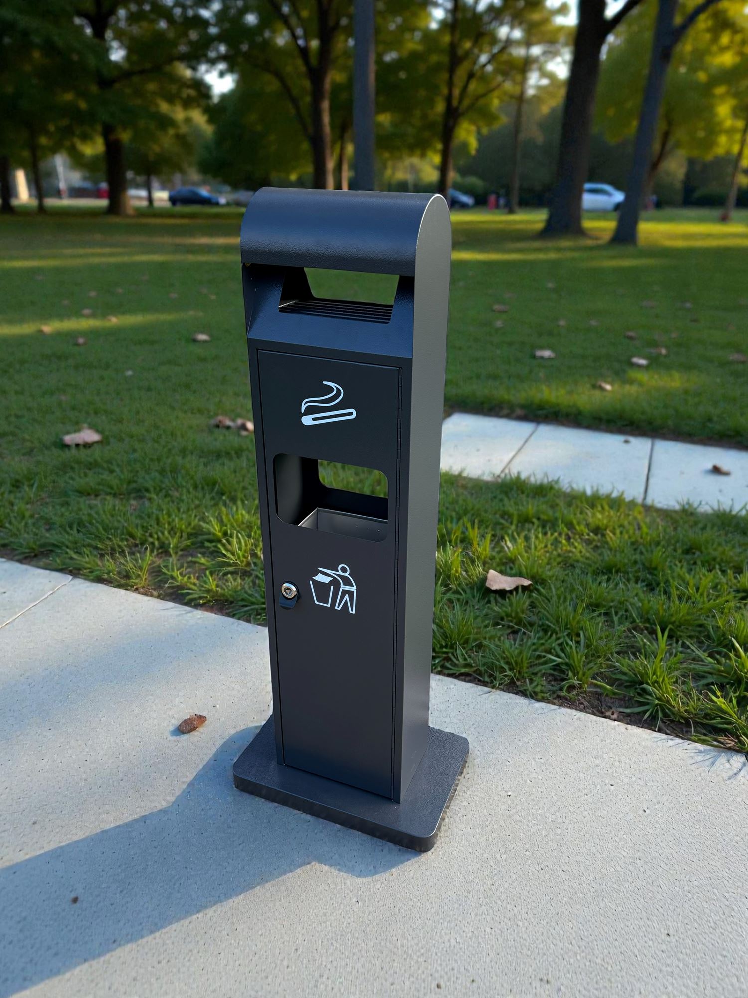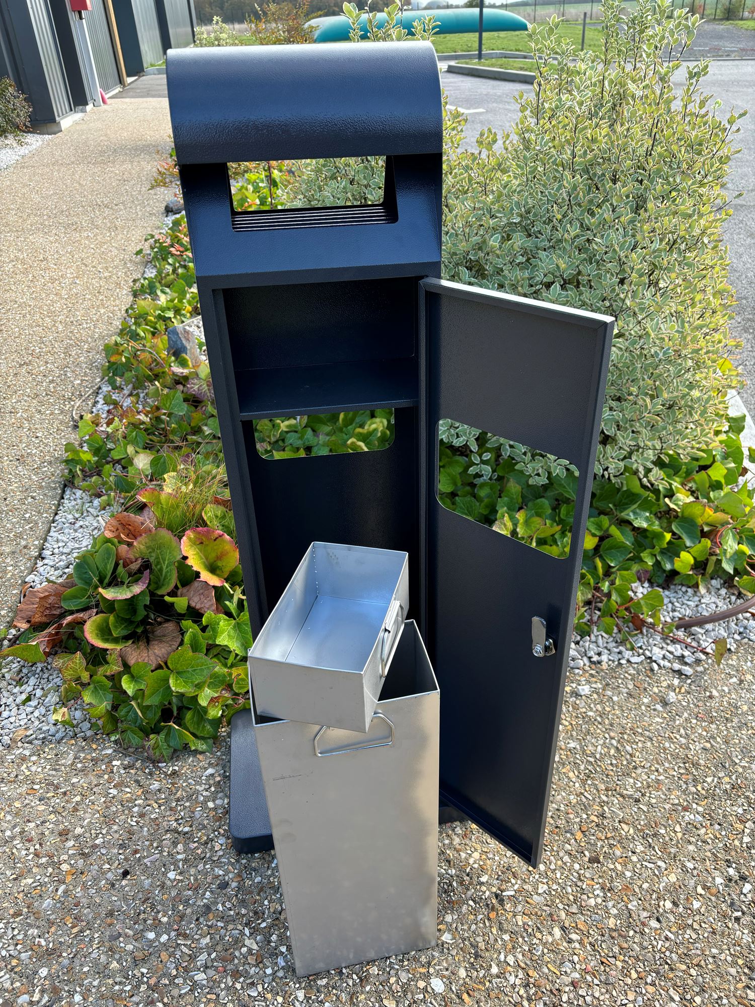 It will find its place perfectly in urban spaces and around or at the entrances of establishments frequented by the public, offering a complete solution for smokers and passers-by.