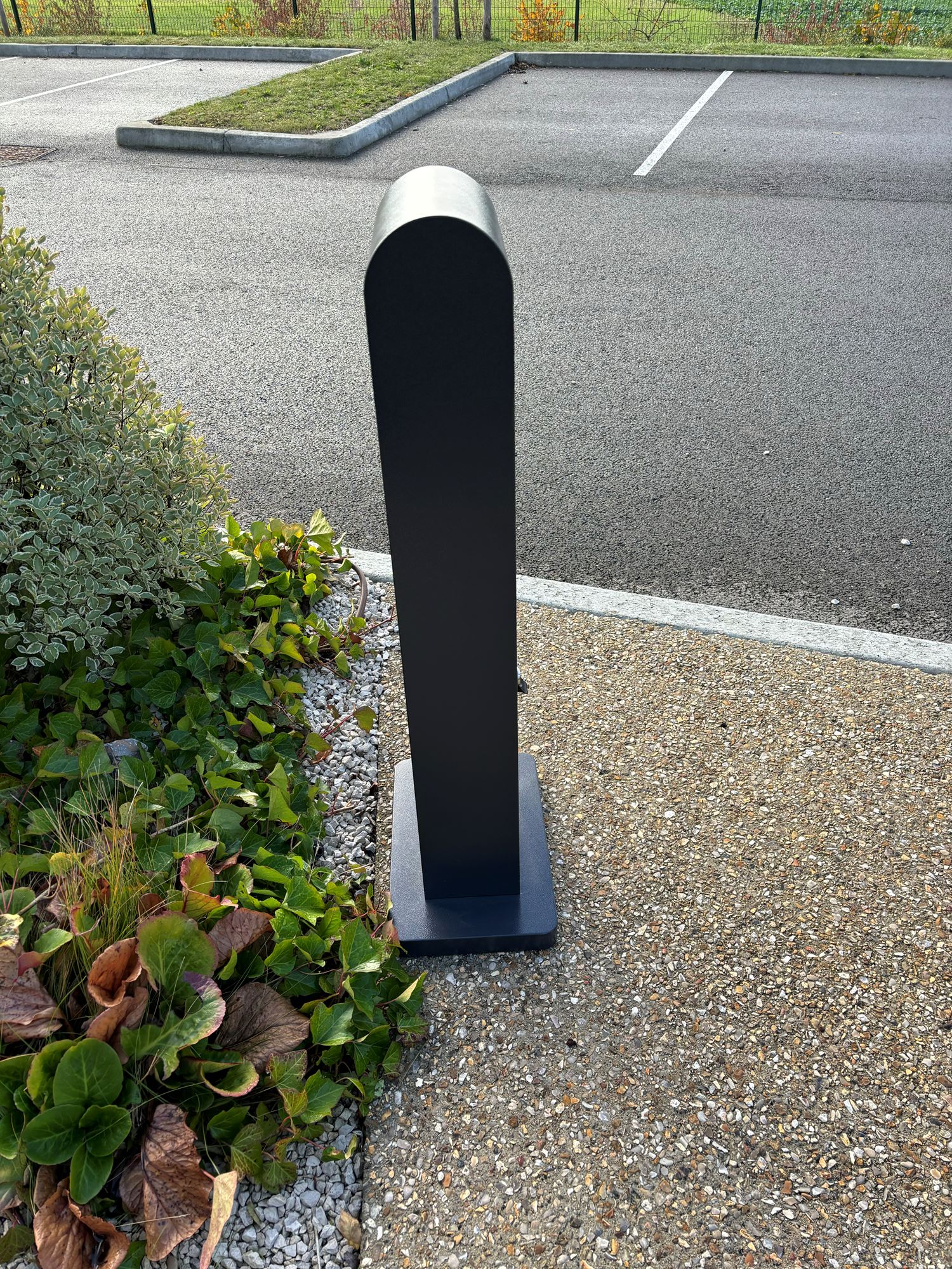 This original design, inspired by the design of kilometer markers on our roads, allows rainwater to slide off the top of the ashtray.