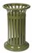Rossignol 60 litre tulip green metal outdoor bin. Olive green epoxy powder coated steel. Vandal-proof. 3-point ground fixing. Highly robust, excellent resistance to corrosion.