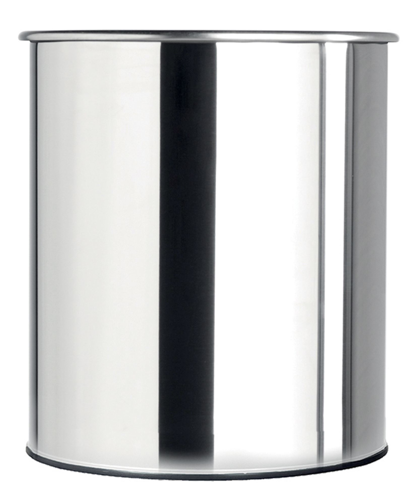 Epoxy steel office wastebasket made in France by Rossignol. 8-litre capacity. Stainless steel colour. Anti-tip and anti-scratch base.