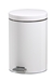 White metal pedal bin. Ideal for bathrooms and patient rooms. Plastic inner bucket. 12-liter capacity.