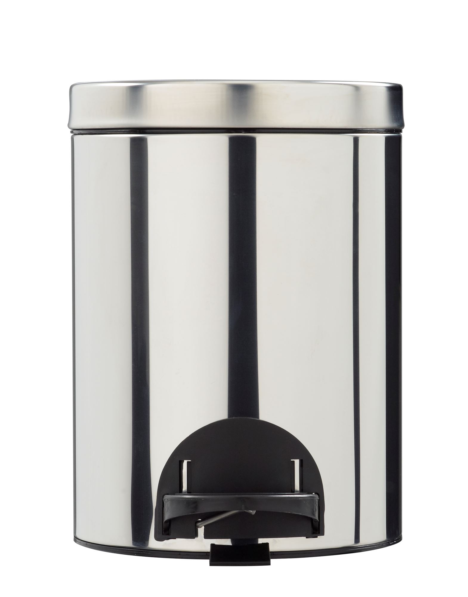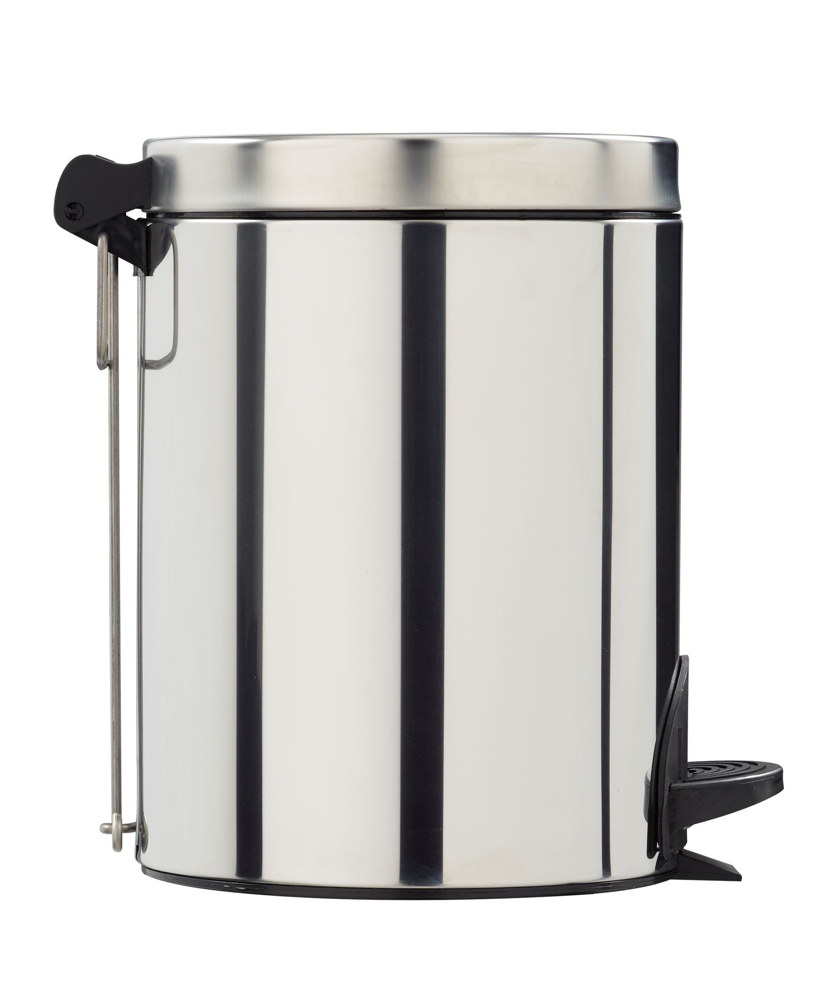 Rossignol 5-litre metal pedal bin in AISI 304 (18/10) stainless steel with antibacterial bucket. Anti-tip plastic base. AISI 304 (18/10) stainless steel linkage. HACCP compliant. Made in France!