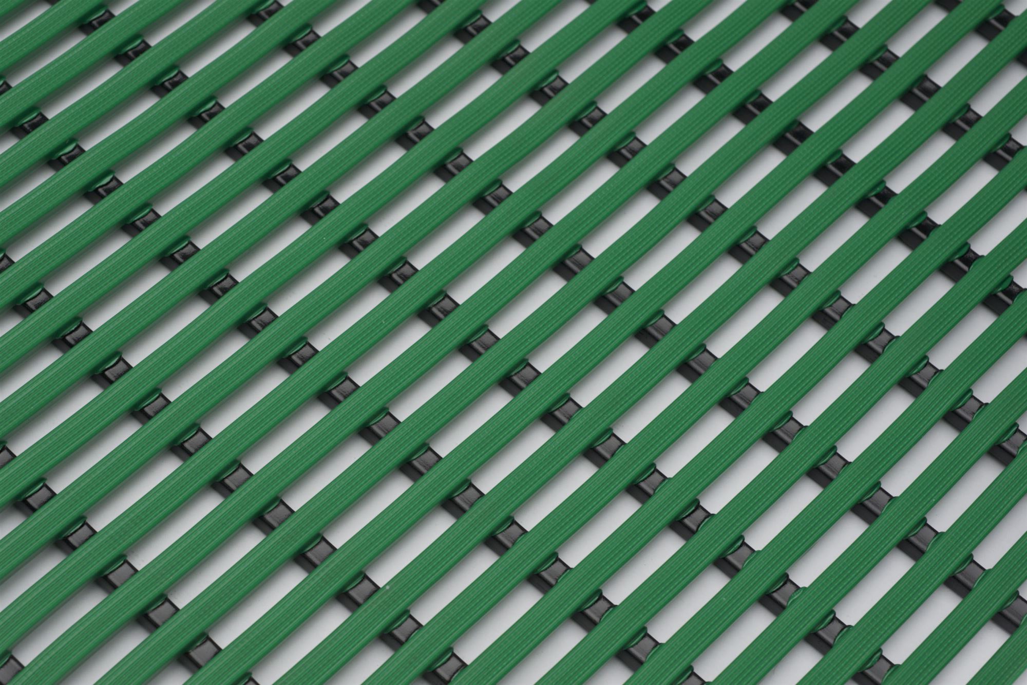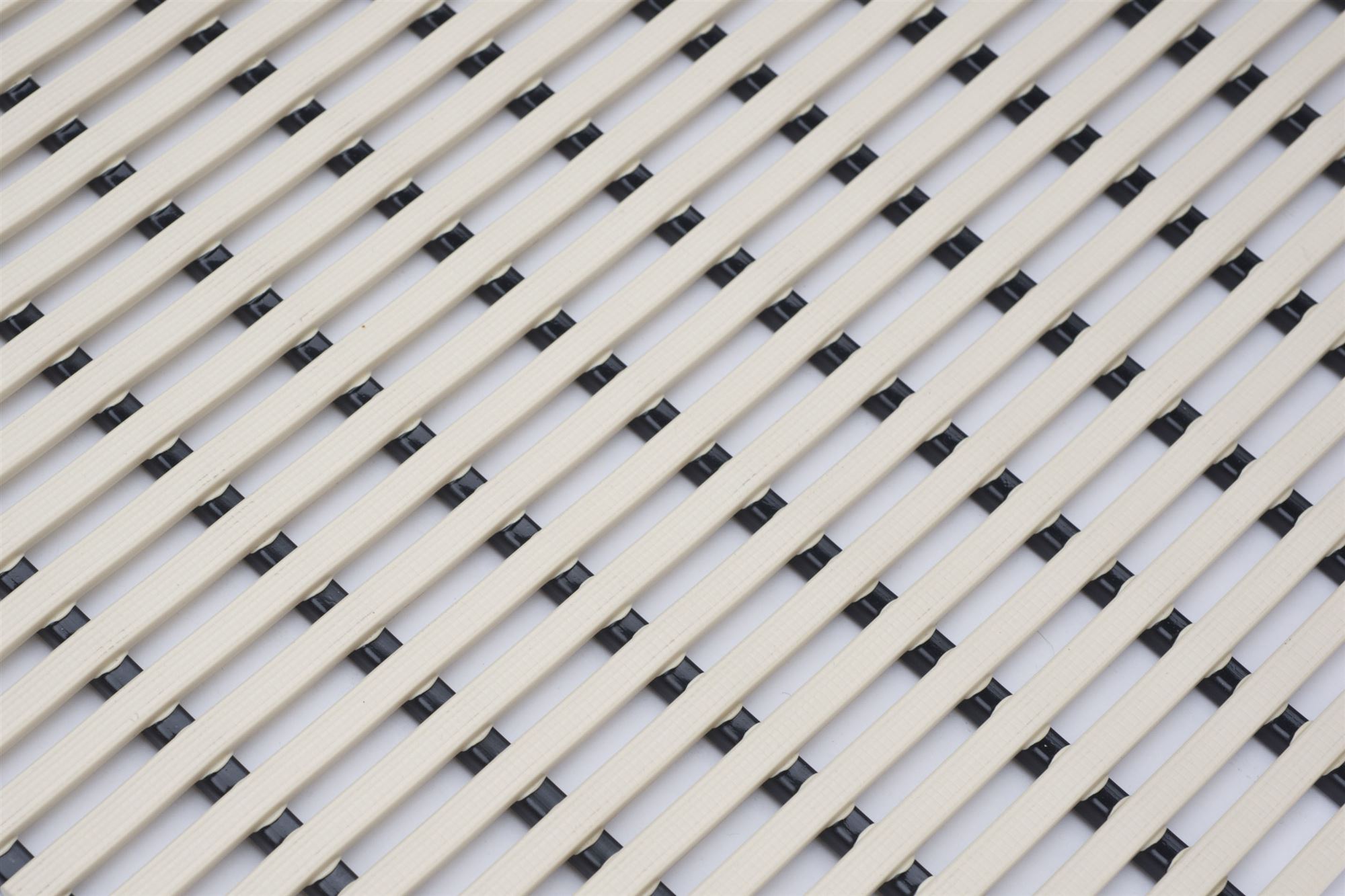 The grating for use in damp environments is composed of flexible PVC. The grating can be used in swimming pools, bathrooms, showers, saunas, changing rooms, fitness center, sports centers ... The grating is in the form of a roller.