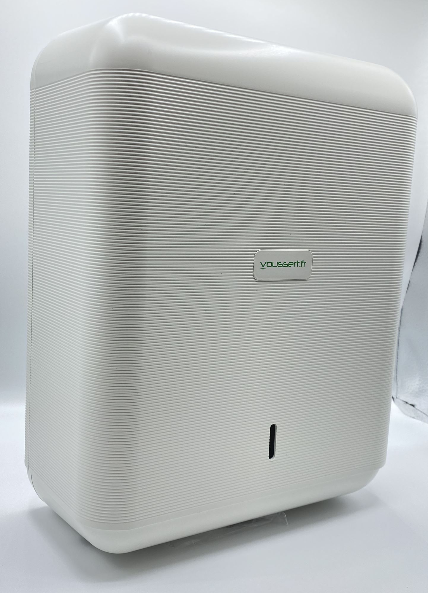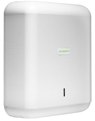 Le distributeur d'essuie mains blanc s'intégrera dans vos sanitaires. Le distributeur d'essuie-mains possède une grande capacité jusqu'à 600 feuilles.