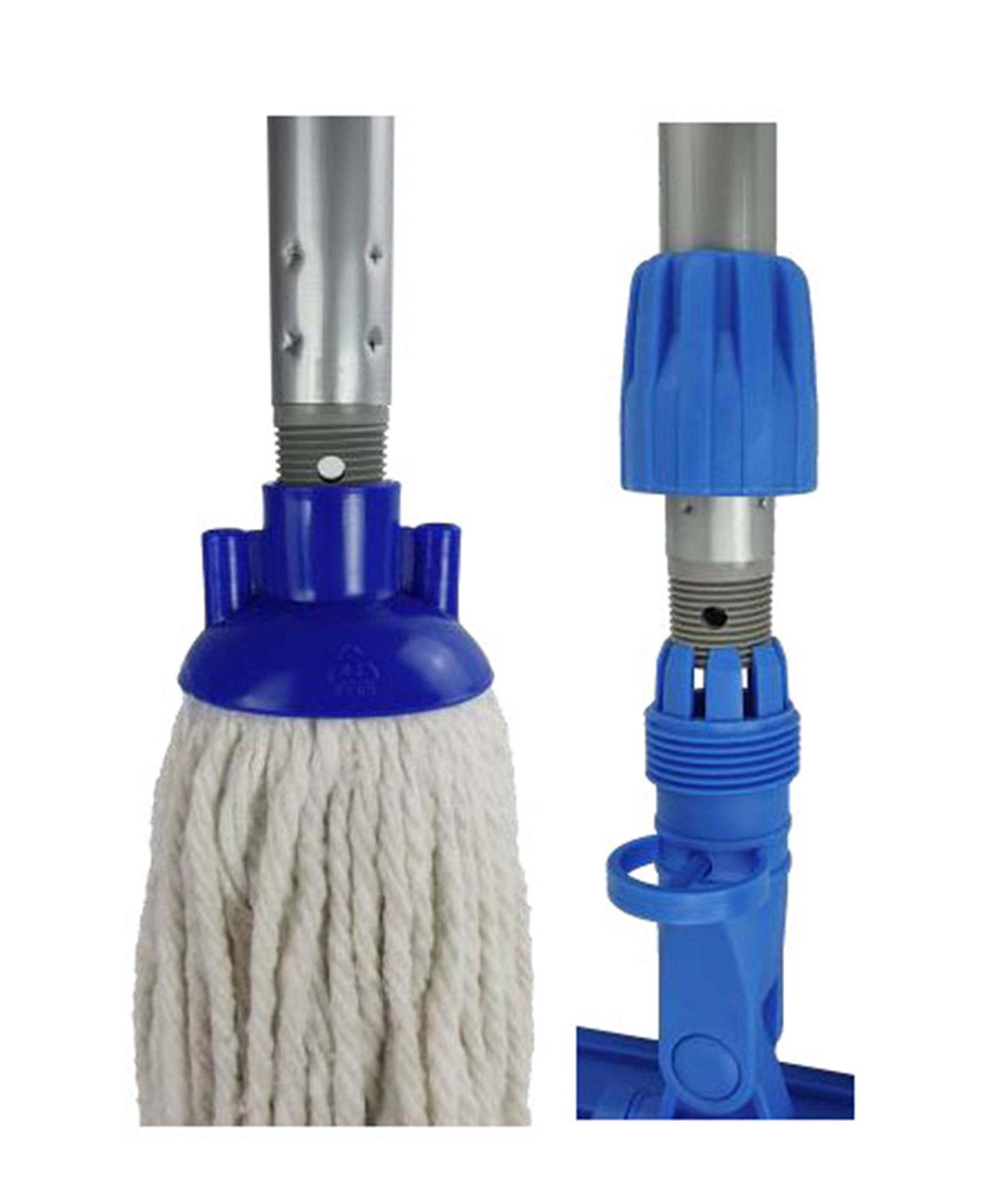 Removable broom handle = small footprint. Broom handle in kit of 4 tubes. Thanks to the hole in the sleeve, the handle is dual-use: screw (brooms, squeegees, etc.) or pin (washing frame).