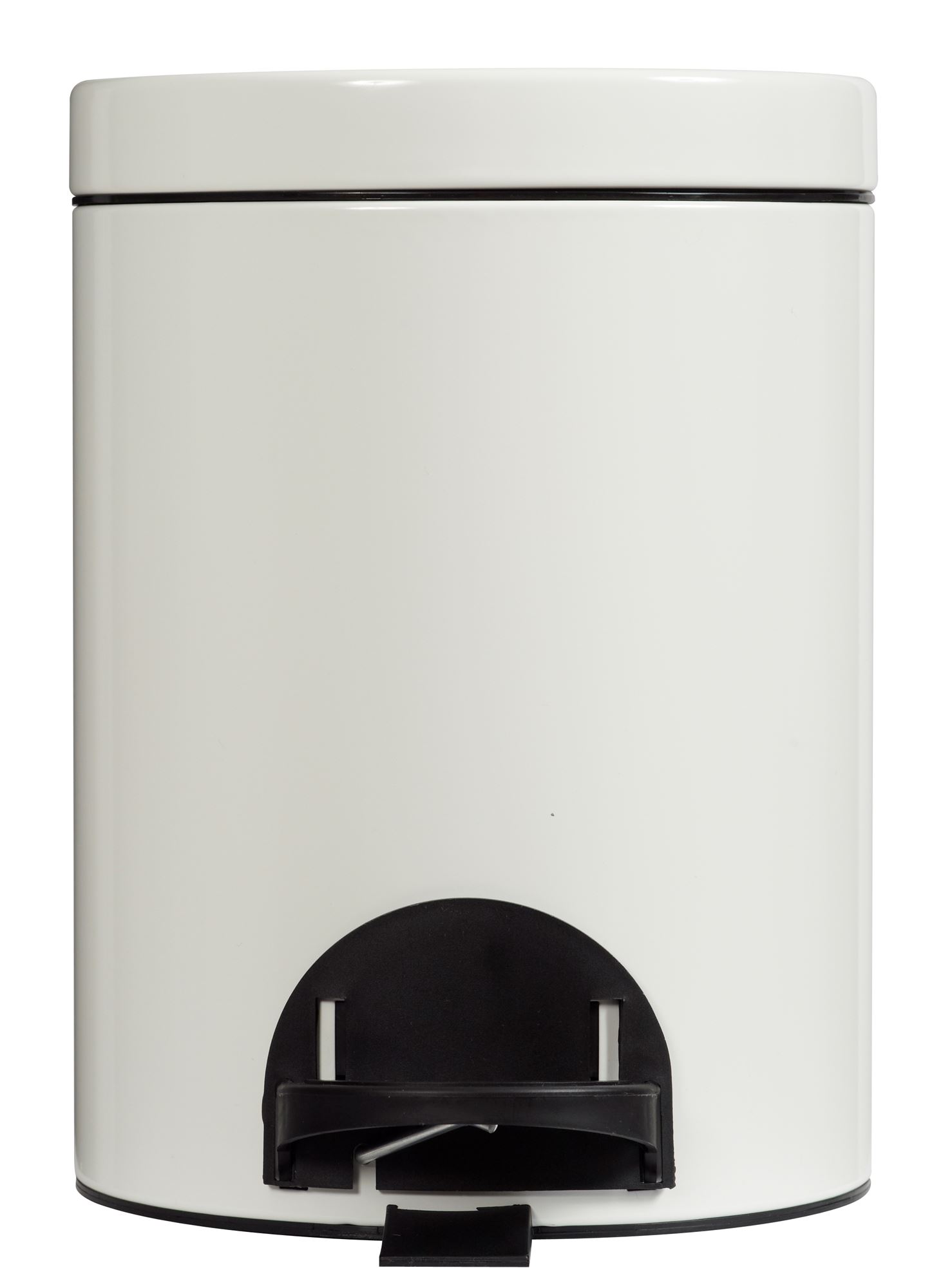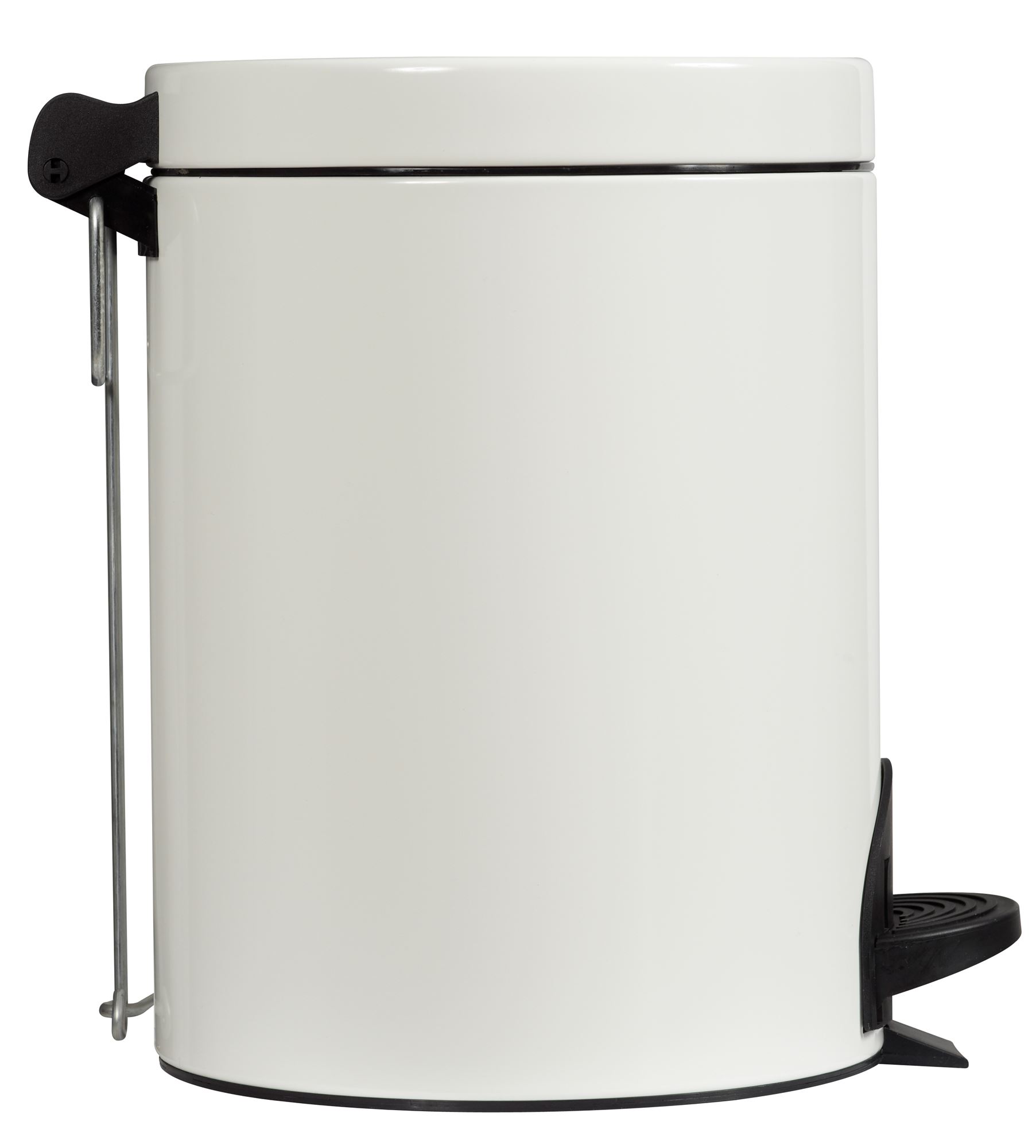 Rossignol white 5L metal pedal bin with anti-bacterial bucket. Epoxy powder coated steel interior and exterior. Anti-tilt plastic base. Galvanized steel linkage. Made in France!
