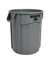 Gray lid for Rubbermaid Brute container 208 liters. The lid has drainage channels to prevent water from s…