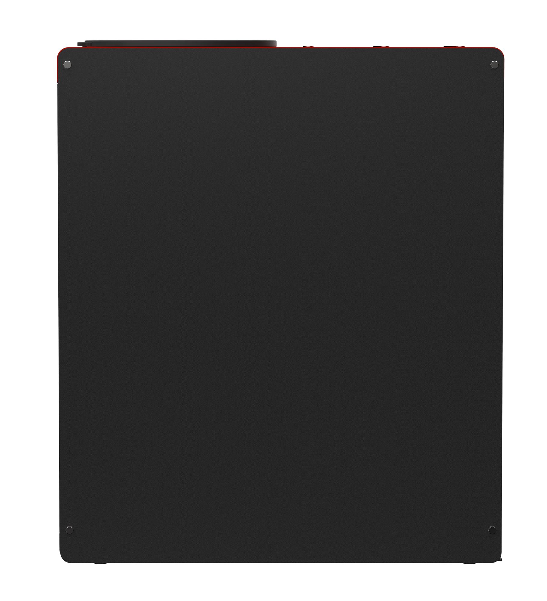 The bin is colored Traffic Red RAL 3020 on the top and the body of the bin is manganese gray.