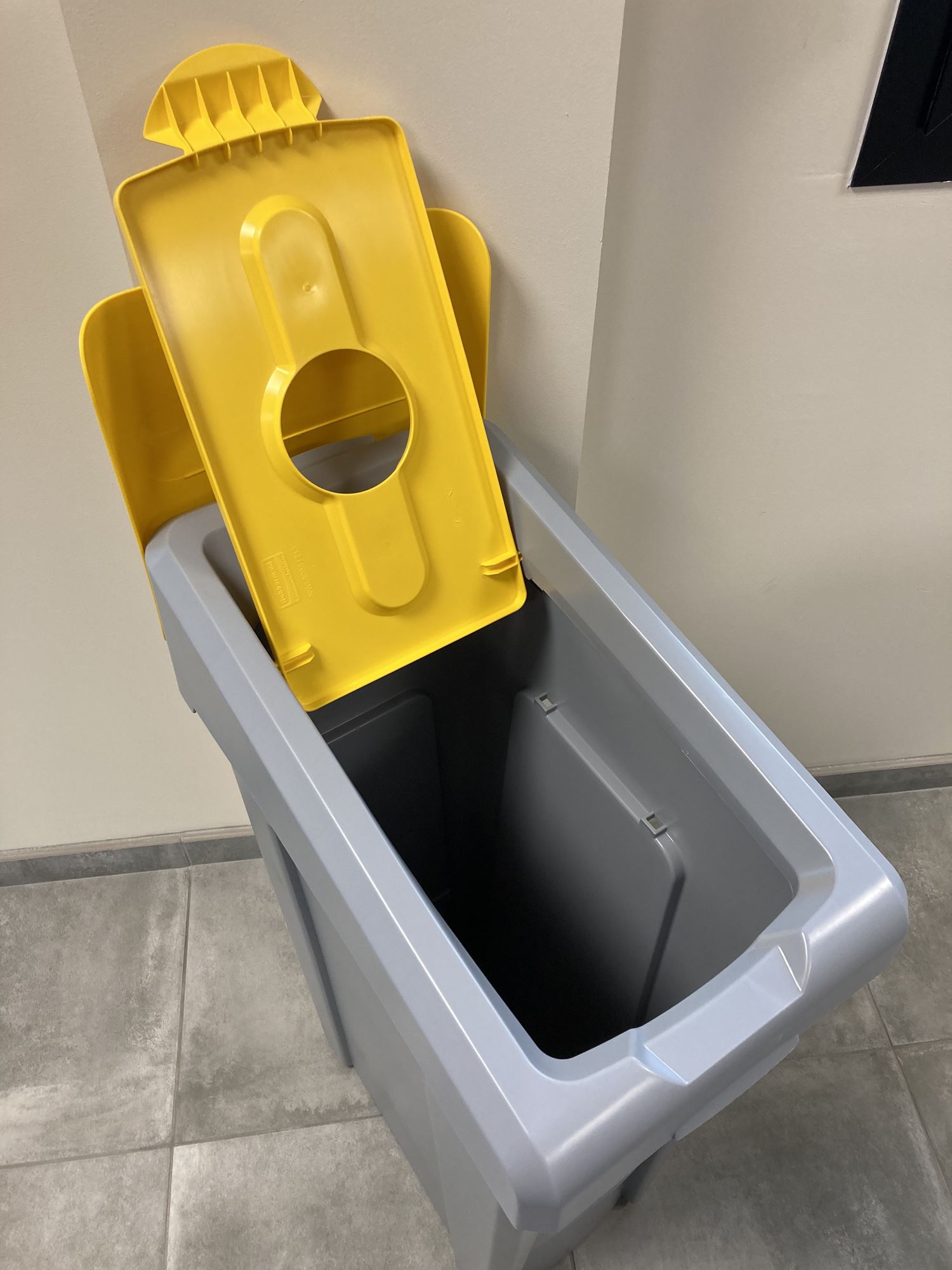 Sort your plastic waste easily with the Slim Jim Rubbermaid sorting collector. The Slim Jim Recycling Bin consists of a base, lid and sorting sign. Ready for sorting!