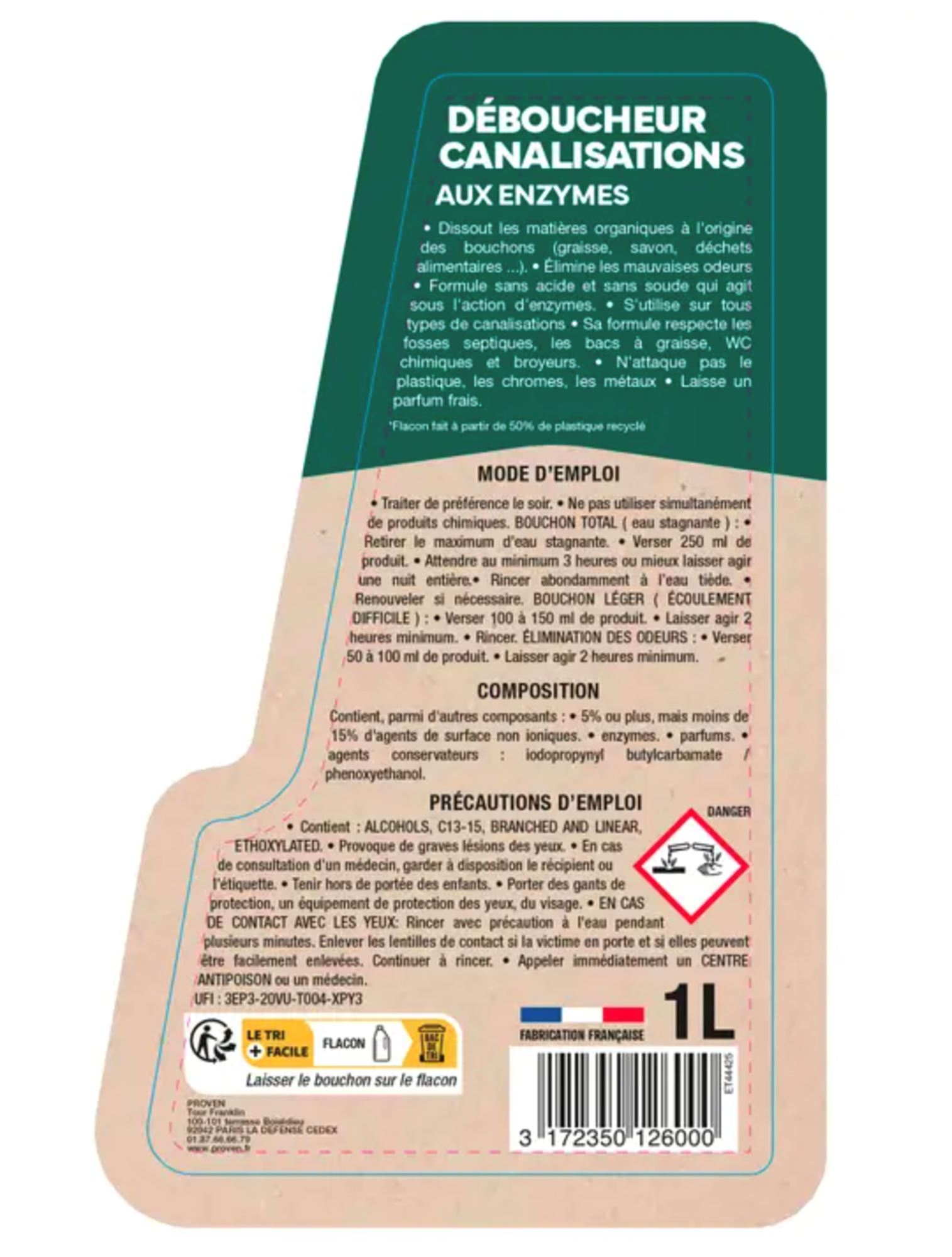 - Versatile and economical — One single product for three uses (unblocking, maintenance, deodorizing) with doses adapted from 50 ml to 250 ml depending on the need.