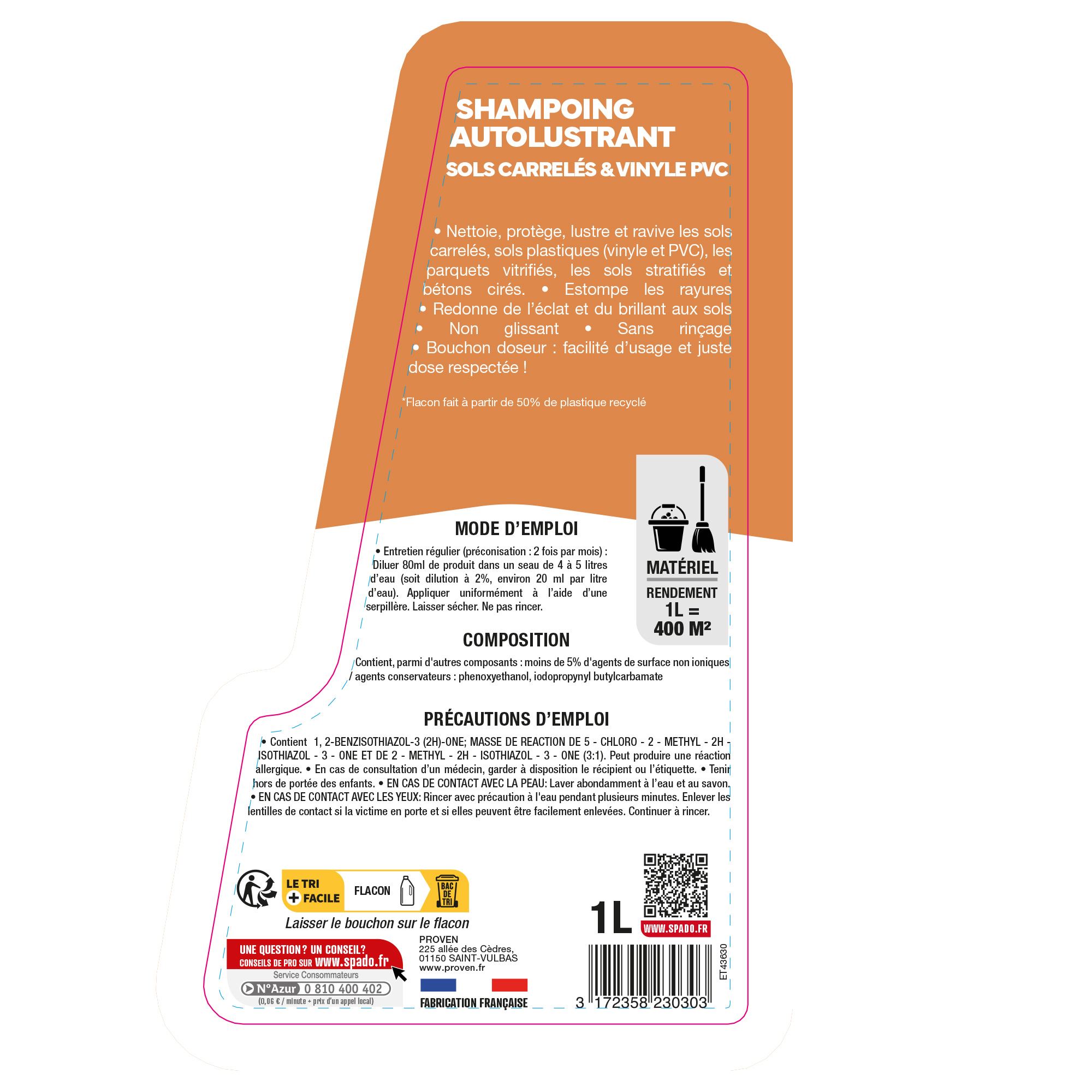 Ideal 3-in-1 solution for the regular maintenance of tiled, PVC, vinyl, varnished parquet, laminate, and polished concrete floors. Its all-in-one formula cleans, protects, and restores the shine of surfaces while smoothing out surface scratches. Practical to use, it requires no rinsing and leaves a non-slip floor. Perfect for bi-monthly maintenance, it provides long-lasting care while facilitating daily cleaning.