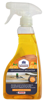 St Wandrille, dusting and shining, cleans and removes dust and gives the wood its original shine. It removes small scratches and protects from moisture and water stains.