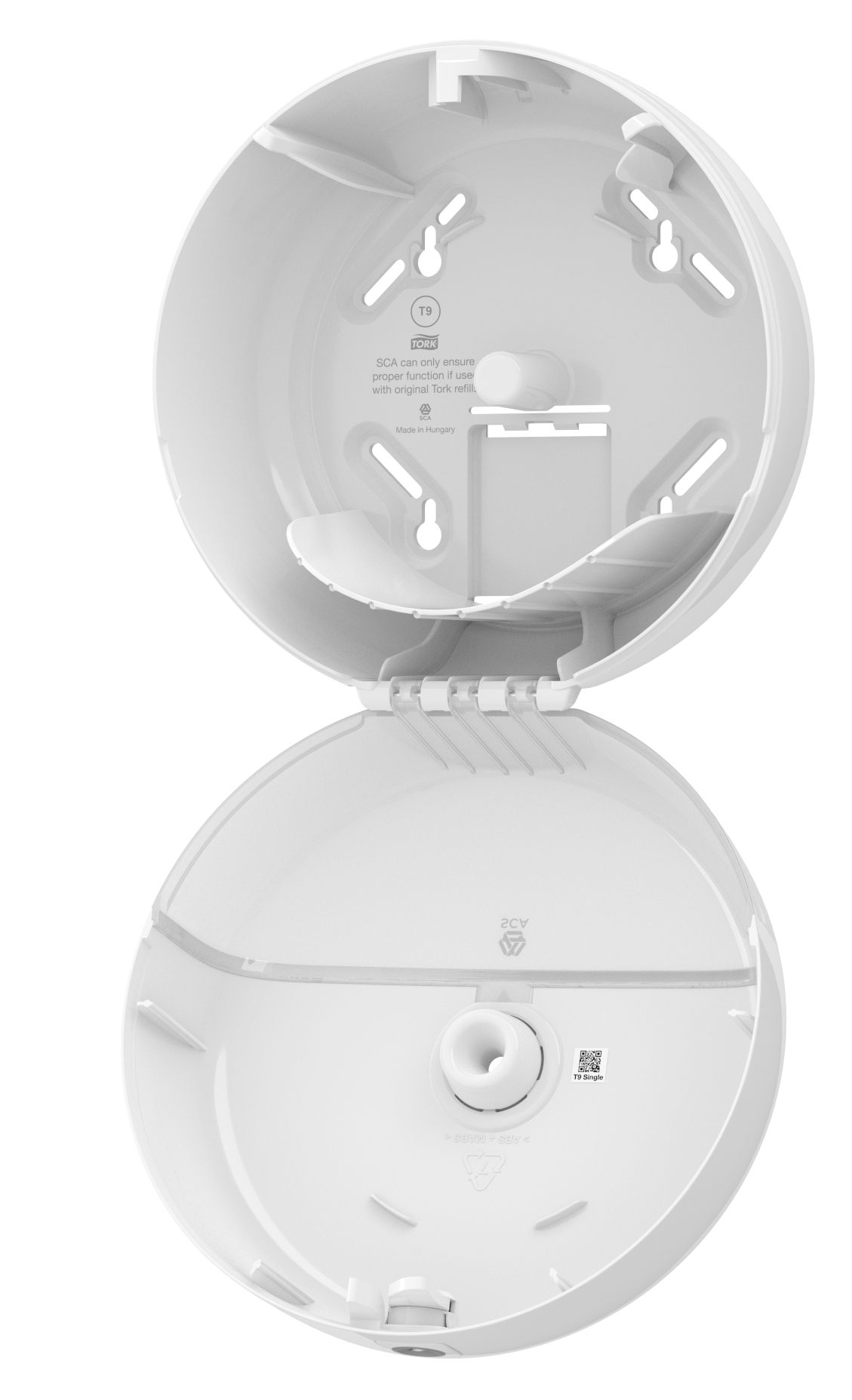 Tork SmartOne® mini T9 is a robust, center-design toilet roll dispenser that dispenses one protected sheet at a time to help improve hygiene, resist vandalism and reduce consumption by up to 40%.