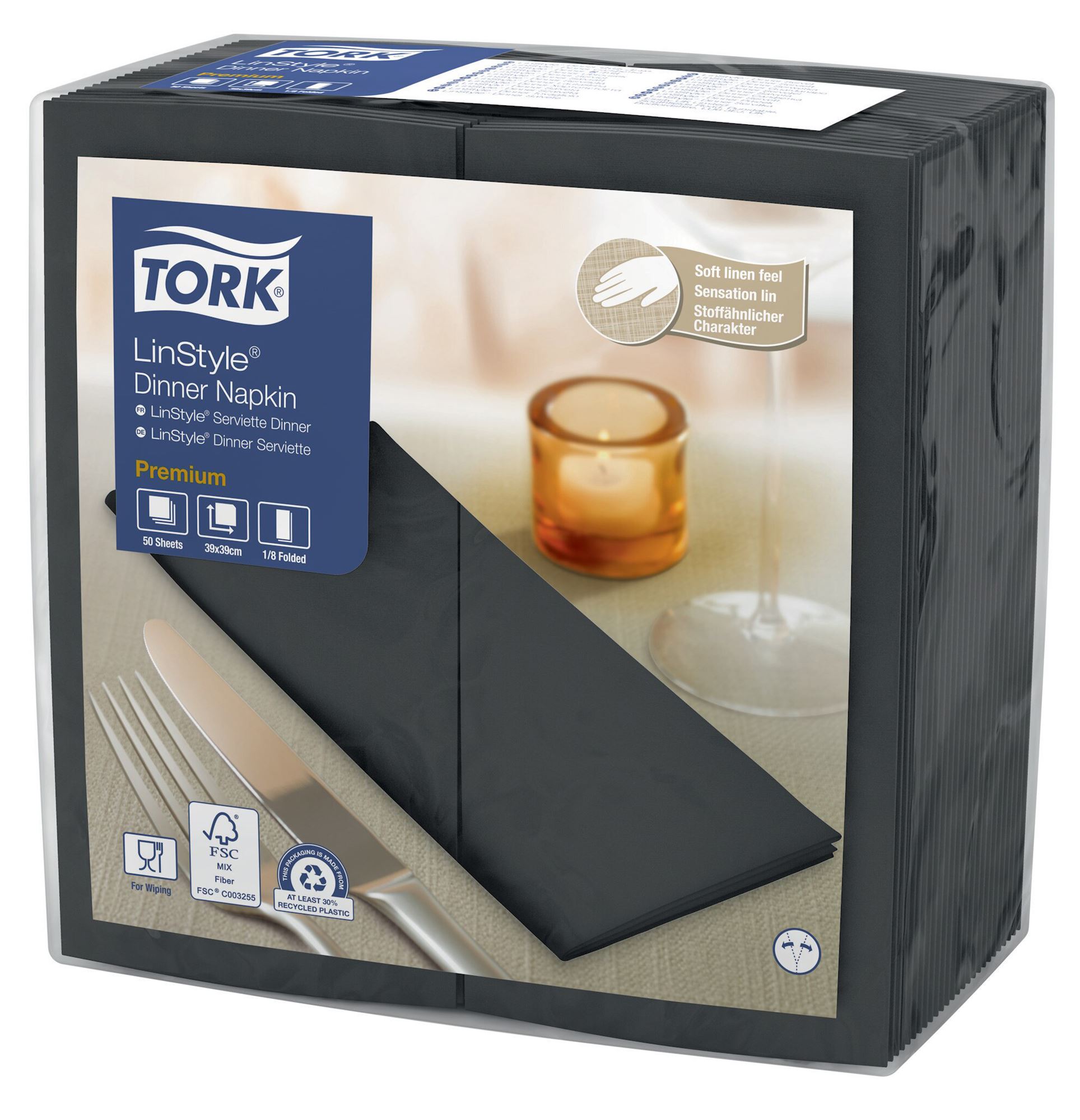 Tork Linstyle 8-fold napkin is ideal for restaurants, where quality is particularly important. Folding 8 allows for more elaborate placement with cutlery. Tork LinStyle has the look and feel of soft, thick textile.