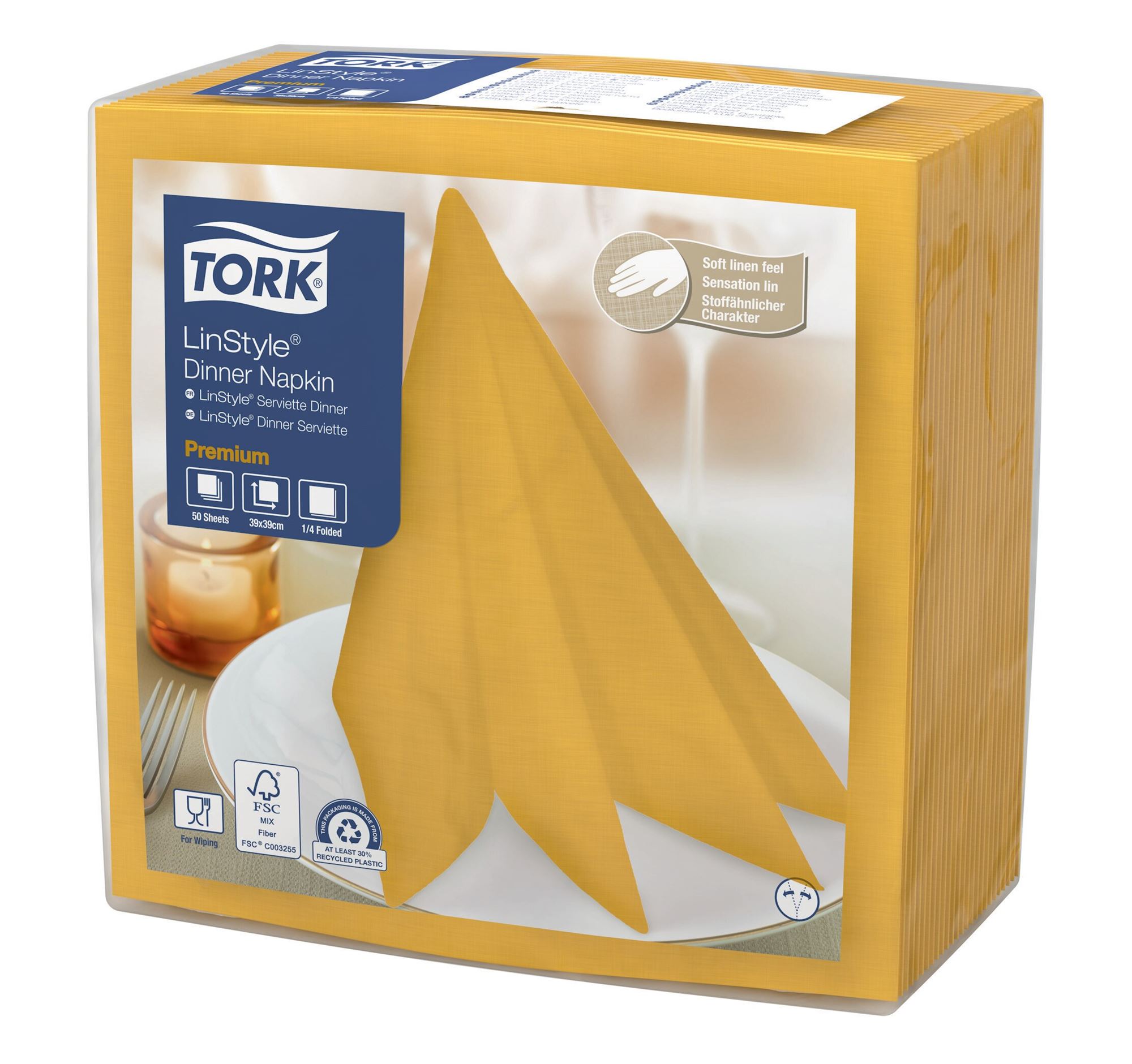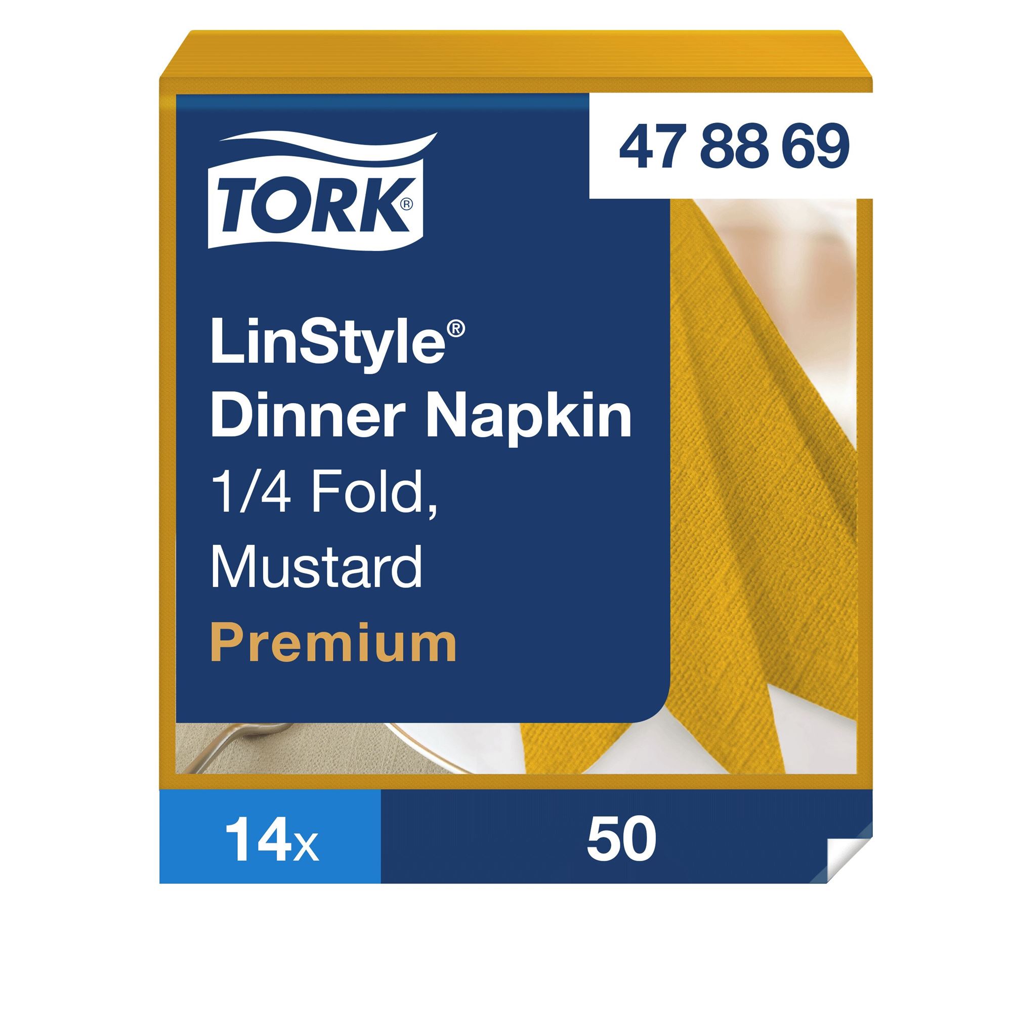 Tork Linstyle dinner napkin in mustard yellow.