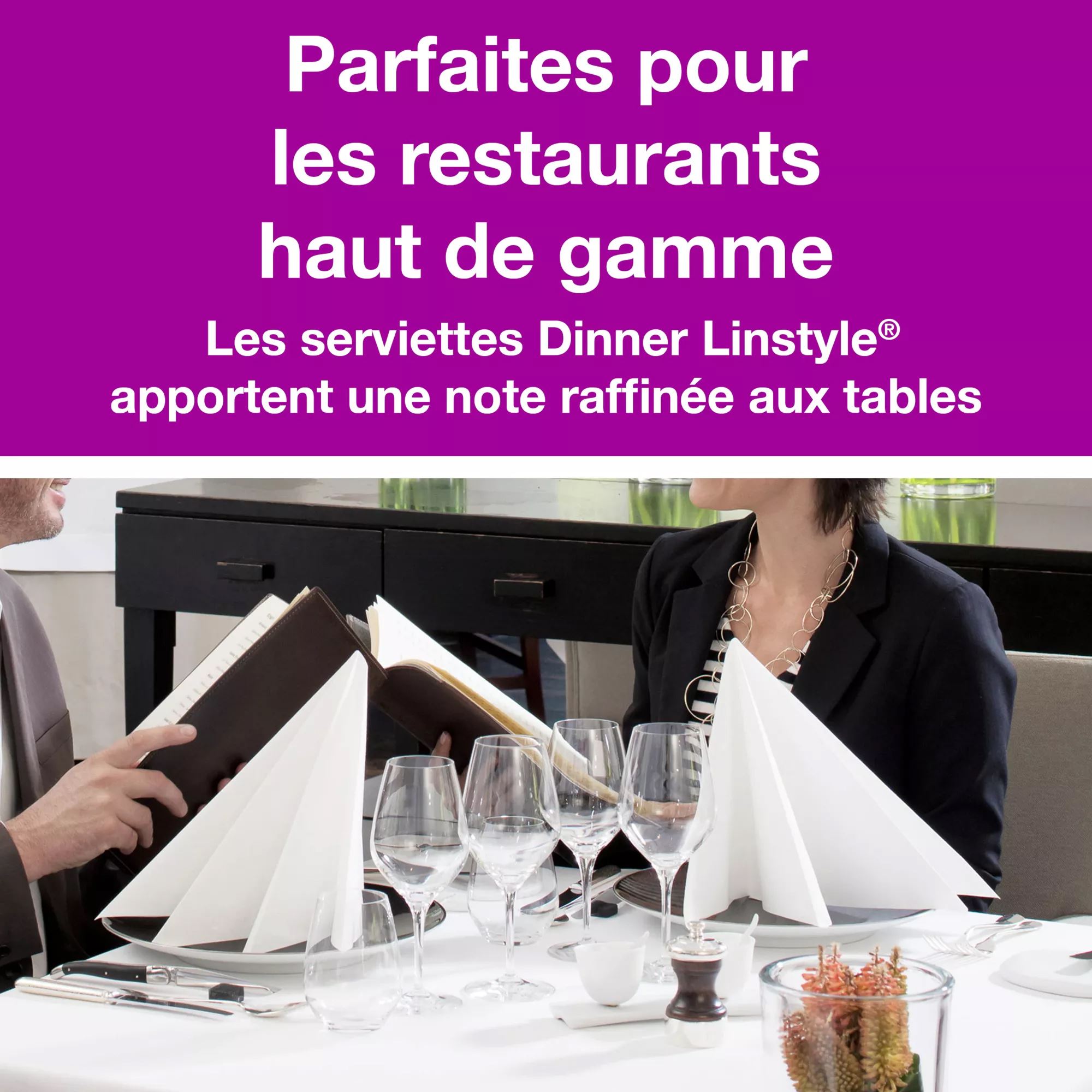 - Non-woven napkin - Thick and comfortable, the LinStyle® napkin lasts until the end of the meal