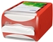 Tork countertop napkin dispenser. System for tangled towels. Plastic material. Red color. System N4. Dimensions (cm): 14.5 x 19.1 x 30.7