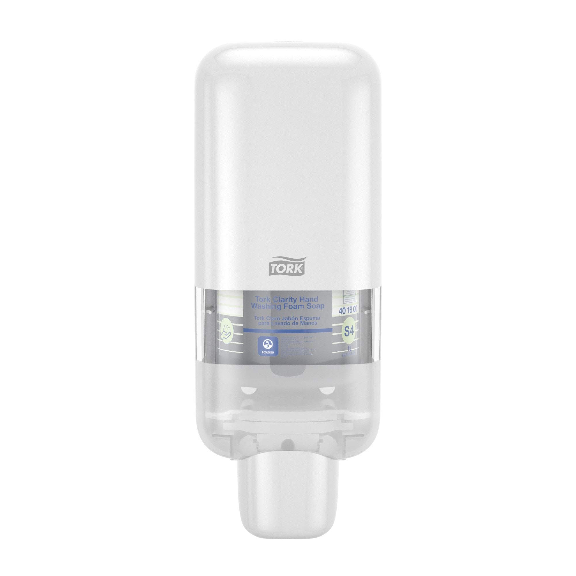 The Tork S4 foam soap dispenser accepts Tork S4 1000ml cartridges. The capacity and the foam formula of the S4 cartridge offers an autonomy of 2500 doses. Color white.