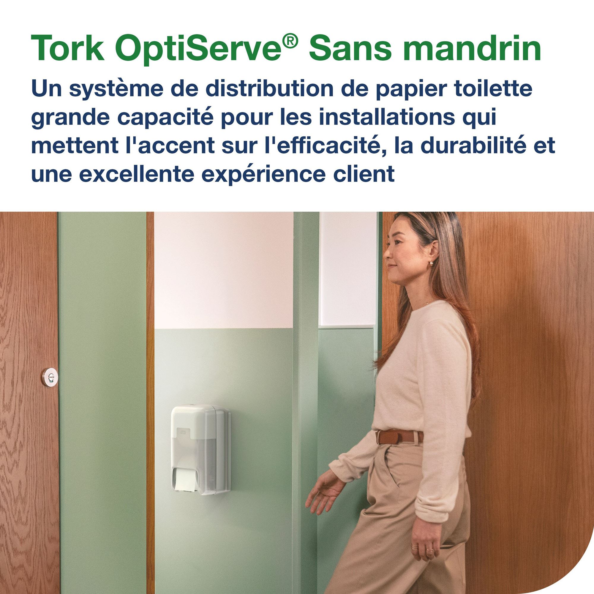 - Enhanced customer experience: With its soft and strong paper, Tork OptiServe® ensures optimal comfort for users, building loyalty through a pleasant and high-quality experience.