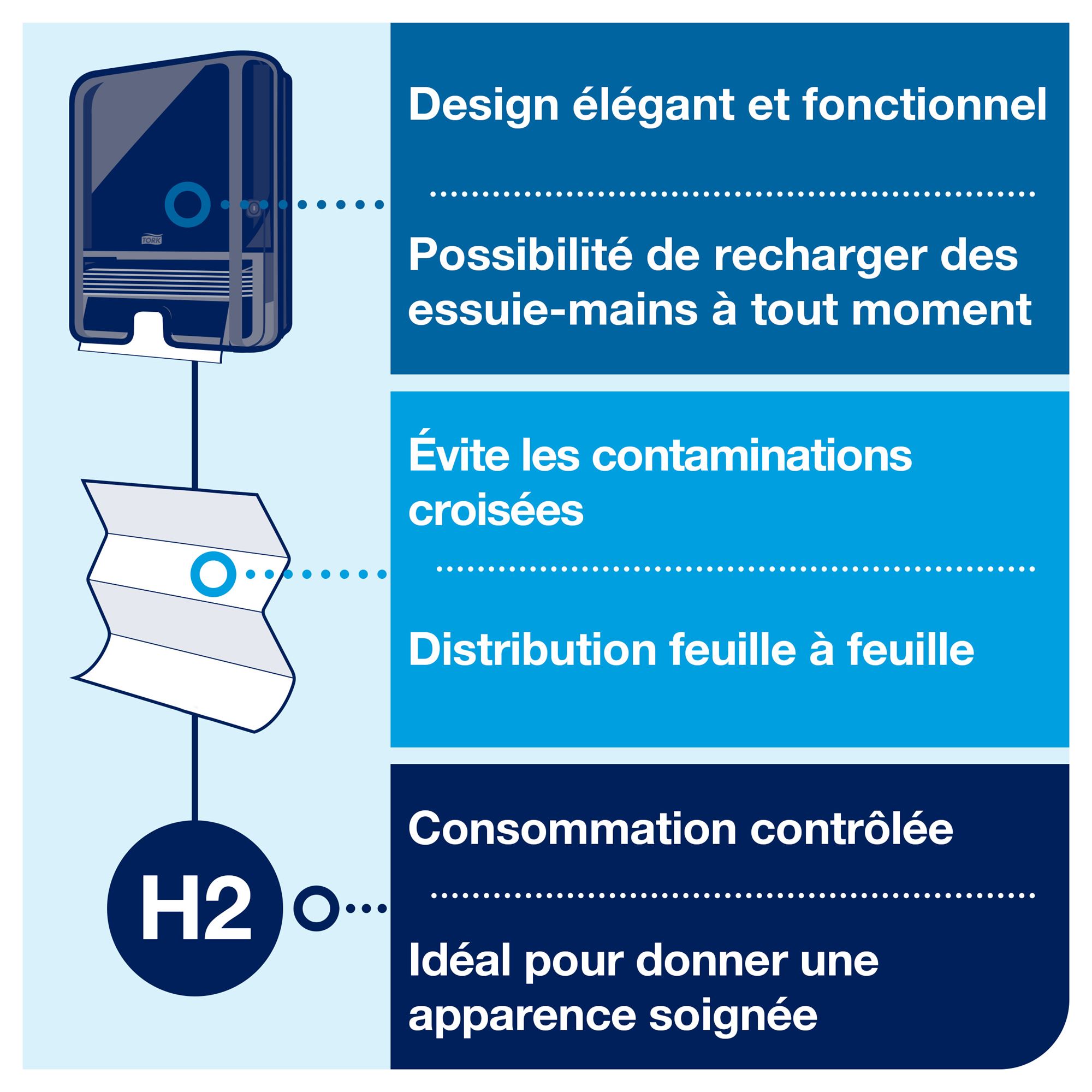 Tork Elevation H2 White hand towel dispenser. Black color.