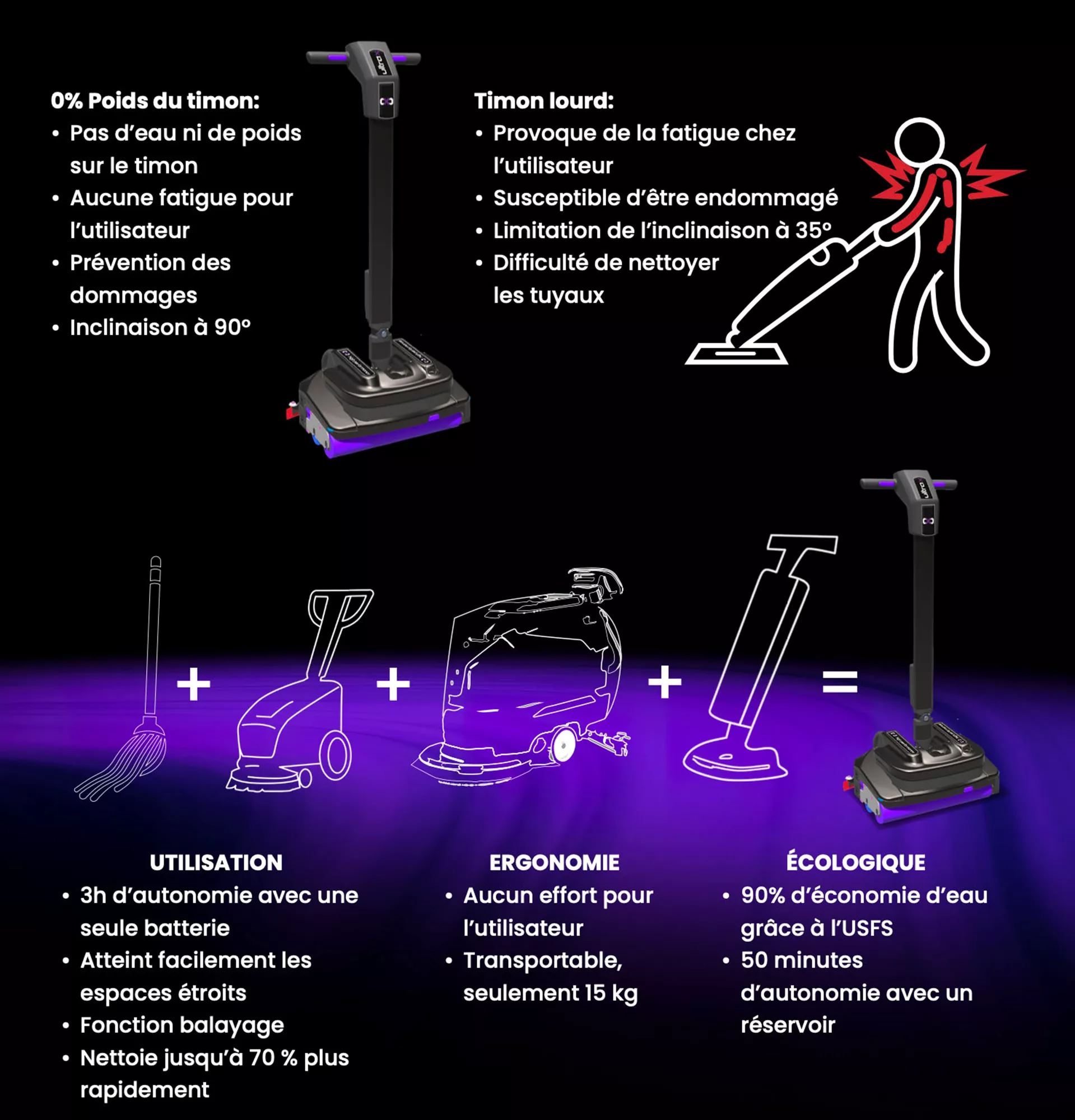 La nouvelle Ultrax Ultra 45 est une autolaveuse ultra compacte qui remplacera balai frange, autolaveuse, monobrosse en un seul outils professionnel.