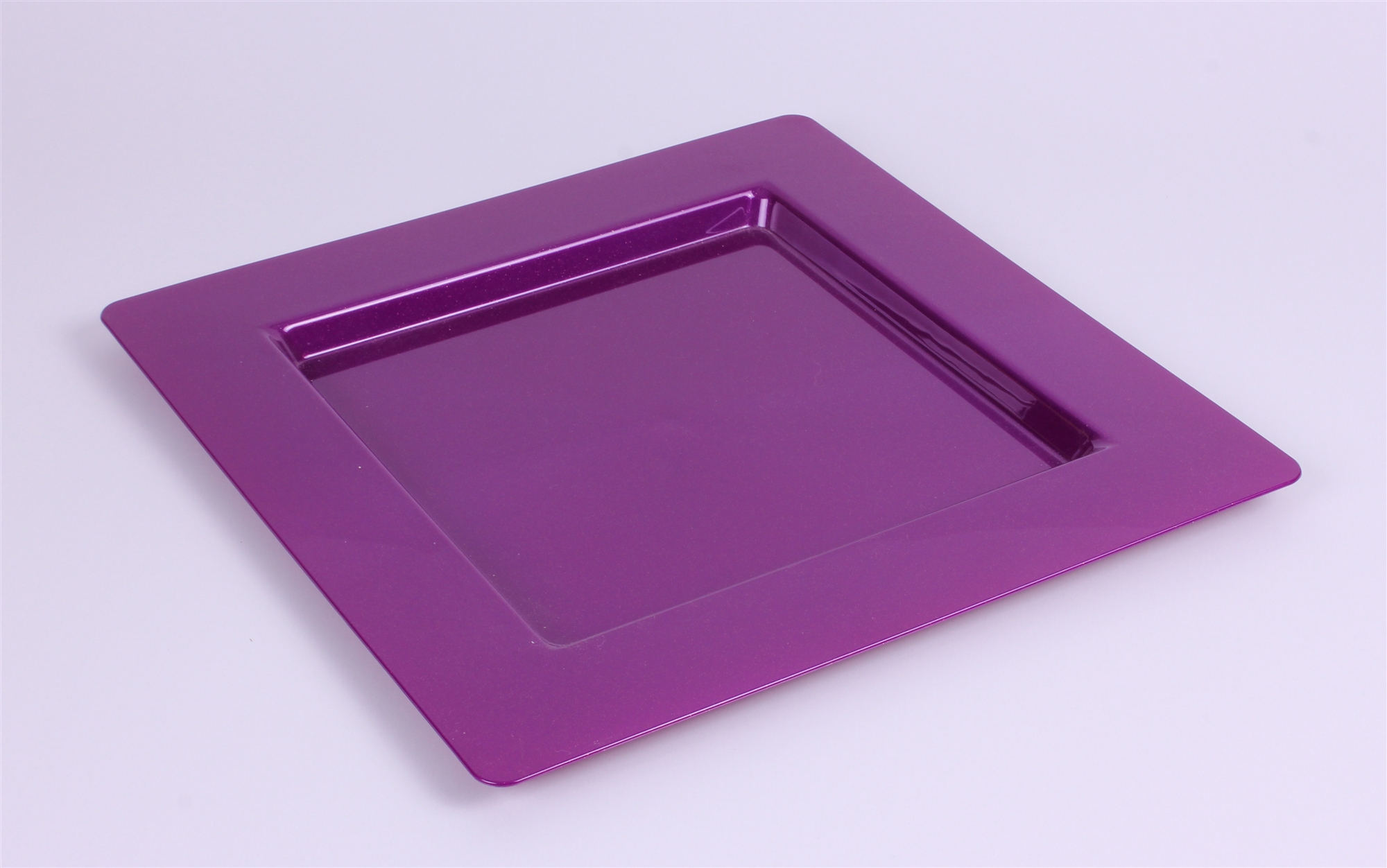 Reusable plastic underplate in purple color, square shape 298x298 mm. Underplate made in France in PS. Reusable and food contact.