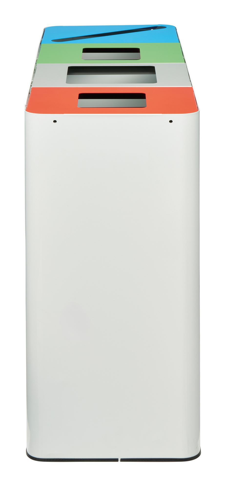 Managing multiple waste streams indoors requires a solution that is clear, scalable, and adapted to specific uses. The system is based on a single, customizable unit, thanks to the choice of lids that define the sorting streams. Distinguishing between the lids is essential for proper configuration: the side lids have rounded edges, while the central lids have straight edges. For a 4-stream version like this one, you will need two side lids and two central lids , selected according to the types of waste to be collected. This modularity allows you to create a solution perfectly suited to each environment, while ensuring clear and efficient organization.
