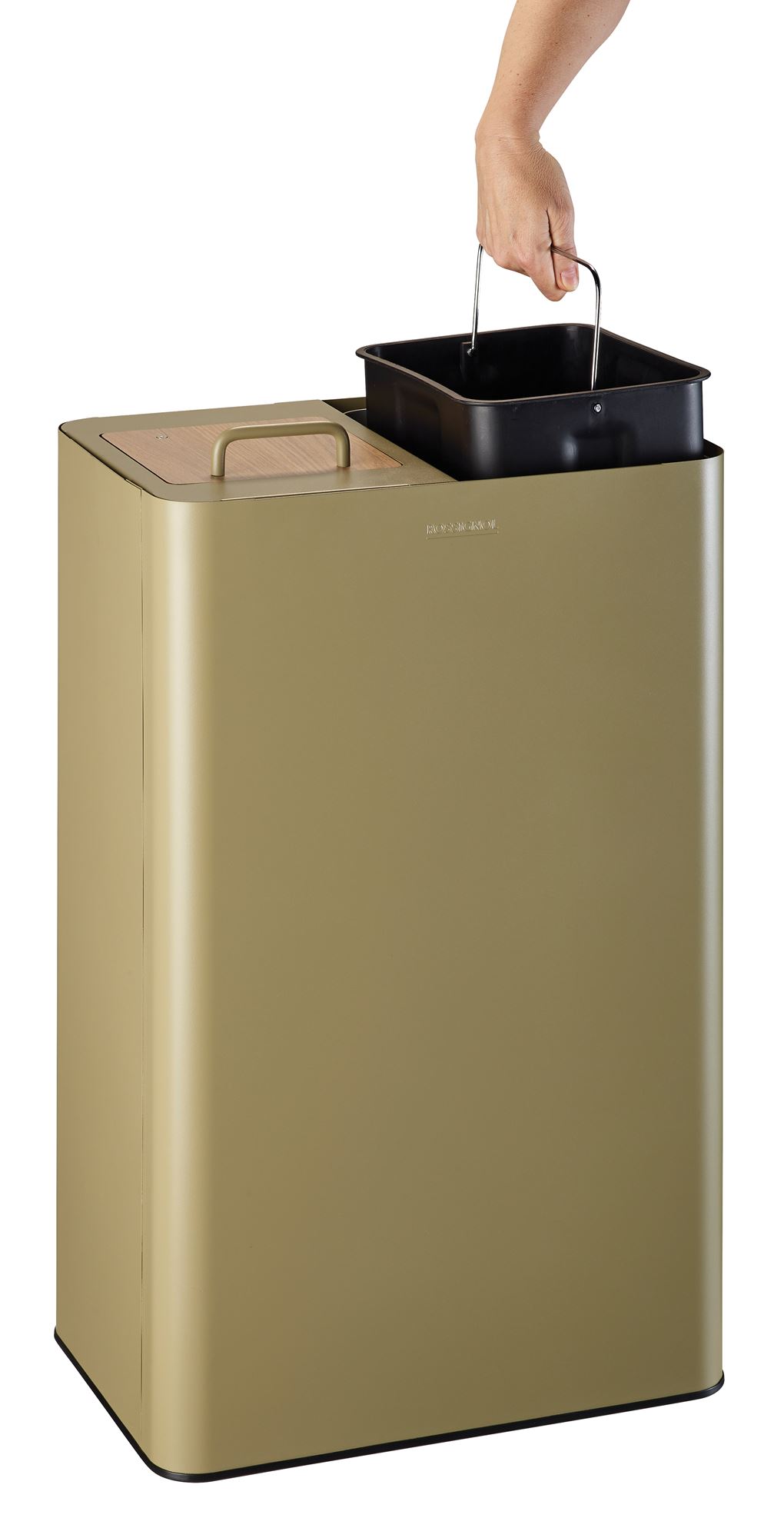 Creating a harmonious recycling area also involves choosing the right finishes. This olive gray version brings a natural and modern touch, ideal for blending into a variety of environments. The wood-finish hatches maintain aesthetic consistency while minimizing odors. Easy to use, it features a convenient emptying system and secure bag retention.