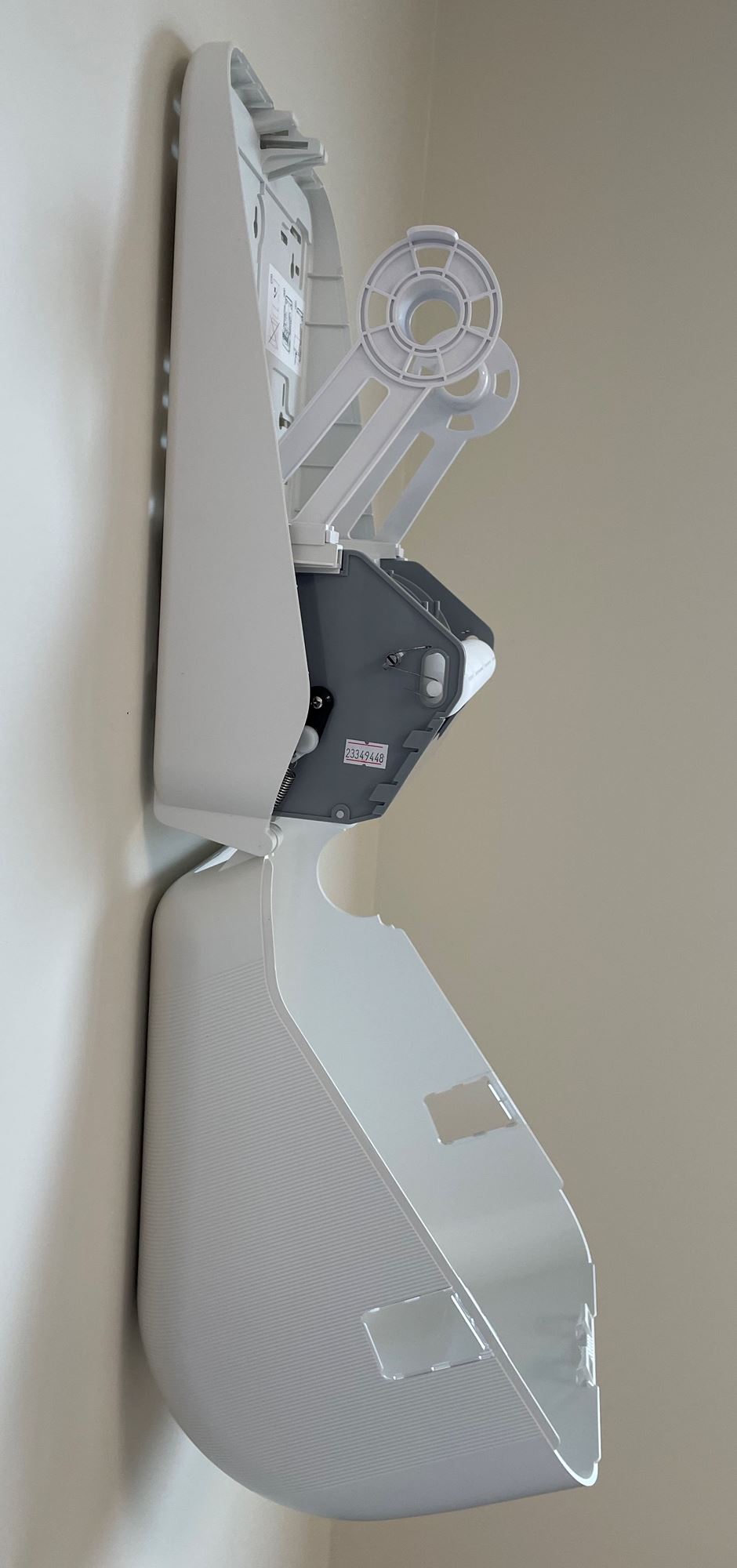 The autocut dispenser accepts reels of disposable paper hand towels. In white color, its design will fit anywhere.