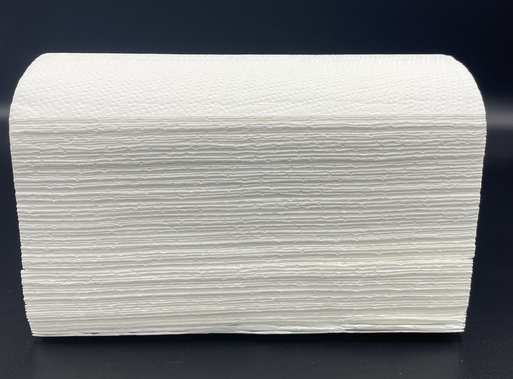Pure cellulose wadding paper hand towels with V-fold. Bright white paper. Ecolabel and PEFC certified. Food contact safe for use in restaurants and institutions. 20x21 cm sheet. Pack of 3000.