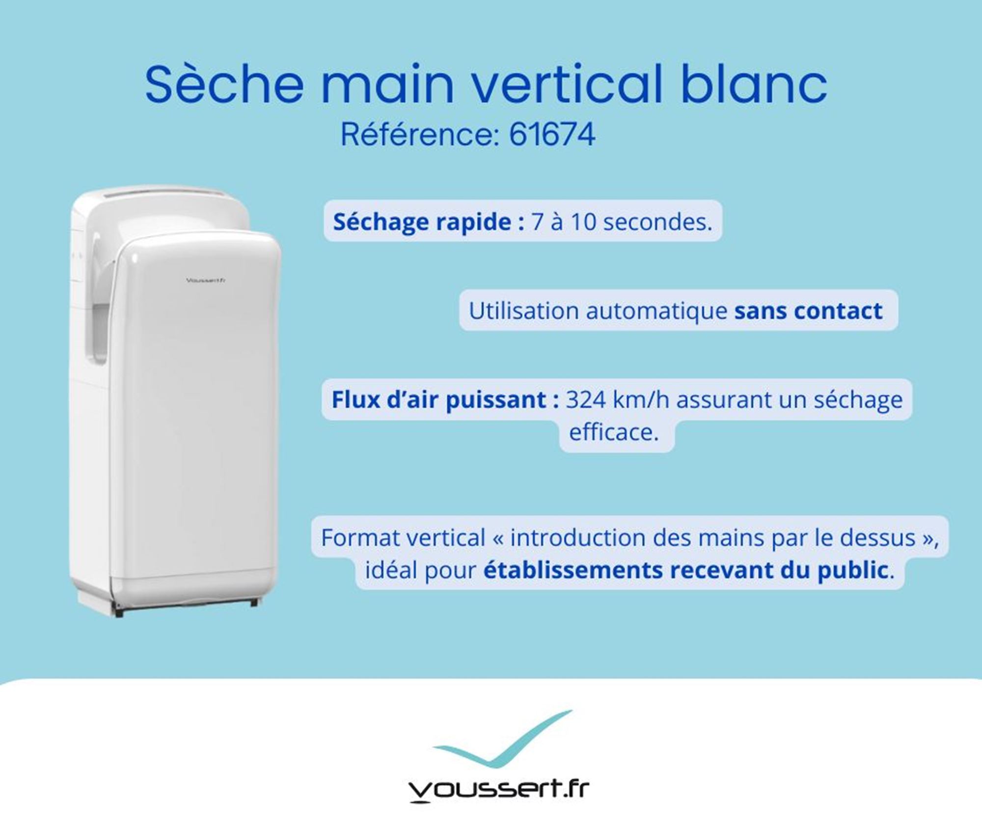 This is the go-to device if you're looking to equip yourself with a vertical air-forced hand dryer. It's proven to be reliable and comes from a manufacturer with renowned expertise in the hygiene industry.