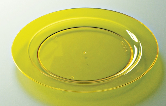 Disposable round plate in injected plastic prestige range. Diameter 240 mm. Available in several colors, crystal or matte finish. Sold in packs of 132 disposable plates.